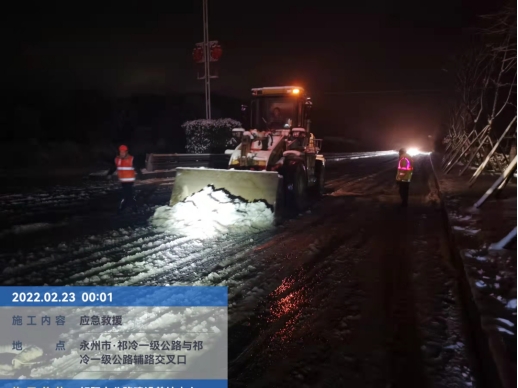 积极应对低温雨雪天气,22日晚,冷水滩区公路建设养护中心根据中心抗冰保畅应急预案,出动中心应急抢险小组35人,在中心负责人带领下,分7个分队连夜赶赴铲冰除雪一线。截至2月23日清晨6时30分,冷水滩区公路建设养护中心已出动抗冰抢险人员80人次,巡查道路200多公里,调派应急抢险机械20台次,撒布融雪剂20吨,连夜清理路面倒伏树枝53处,增设警示标志标牌12块,所辖公路全线安全畅通。
