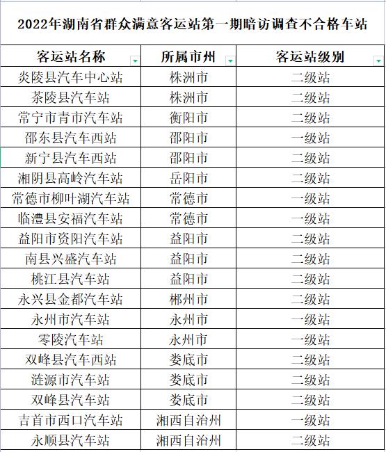今年上半年,湖南省道路运输管理局组织第三方调查机构完成了全省二级及以上汽车客运站(以下简称“客运站”)2022年第一期暗访调查工作。