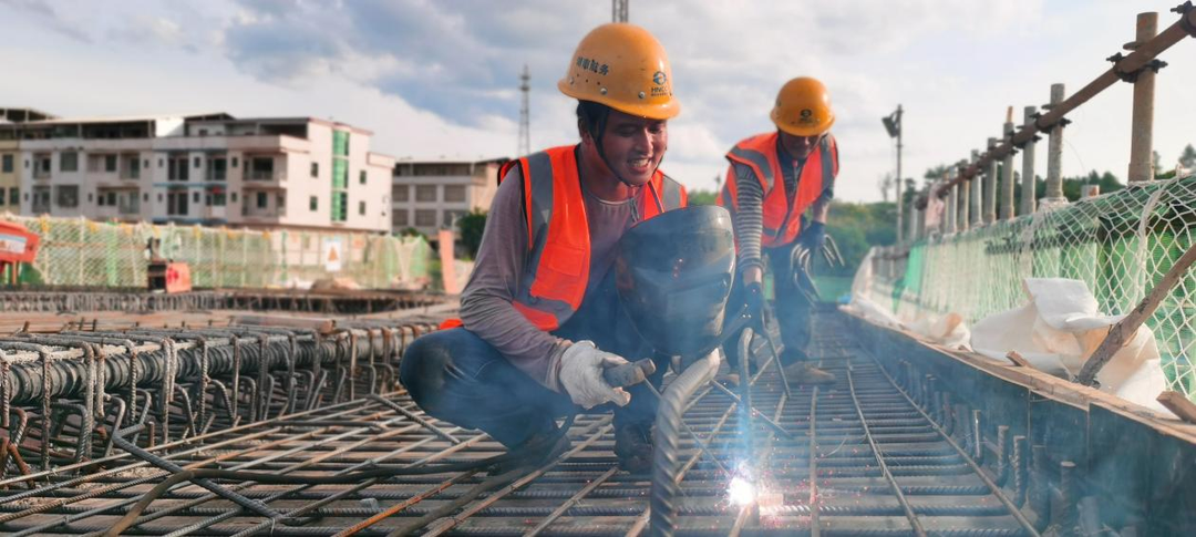 工人们挥汗如雨,不惧酷暑,全力推进项目建设进度。