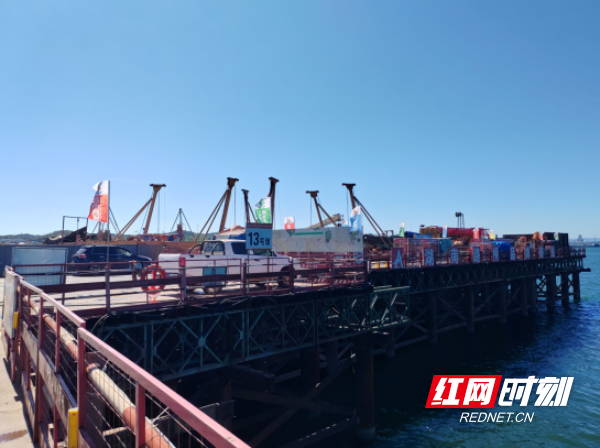 8月12日上午,记者在醴娄高速株洲湘江特大桥施工现场看到,这里正在进行桥梁桩基和下构施工。碧绿的湘江水面上,作业平台犹如长虹卧波在水面上蜿蜒延伸。13号墩的施工平台上,班组长李海龙与工友们正加紧桩基施工作业。李海龙介绍,现在天气热,工人轮班作业,机器24小时不停。项目部搭建了休息室,装了空调,里面有水、防暑降温药品等。