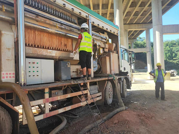 “我们共需建设24座桥梁,其中采用冲击钻开挖的桩基484根,施工产生的泥浆约72948立方。”醴娄高速第二合同段相关负责人表示,一台移动式泥浆处理车,每小时可处理泥浆20立方,较传统的外运泥浆处理方式,每立方可节约10元,整个合同段的桩基泥浆处理可节省资金约109万元,极大解放了劳动力、缩短了工期、提升了生态环保效果。