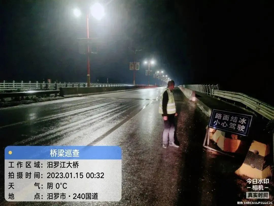 为确保全市国省干线公路畅通,汨罗市公路建设养护中心紧急召开线上视频会,及时启动Ⅳ级应急响应,并根据应急预案安排除冰保畅、值守巡查工作。中心安排专人值守所辖桥梁(包括城区的汨罗江大桥、红花大桥、新市大桥、伍新桥、罗城桥等5座桥梁),同时组织应急抢险队深夜巡查,及时加强对各条干线公路的路况和急弯、陡坡、临水临崖危险路段的巡查。