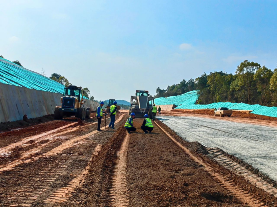 在项目第一合同段k3+380段施工现场,路基96区正在开展红粘土改良水泥土作业,技术人员紧盯拌和深度、水泥洒布量、含水量等技术指标,确保路基质量符合标准。