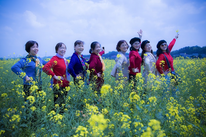 在长沙县江背镇五福村,老同志们赏油菜花,漫步在田园小道,置身于金色花海,呼吸着新鲜的空气,脸上洋溢着幸福的笑容,深切感受到了乡村振兴下的新农村变化。