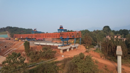 虎形大桥位于茶陵县枣市镇虎形村境内,自东向西横跨国道G322,全长712米,共需架设200片30米T梁,20片40米T梁,10片25米T梁。