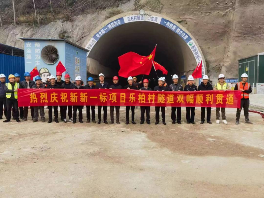 近日,新新高速项目第一合同段乐柏村隧道实现双幅顺利贯通。