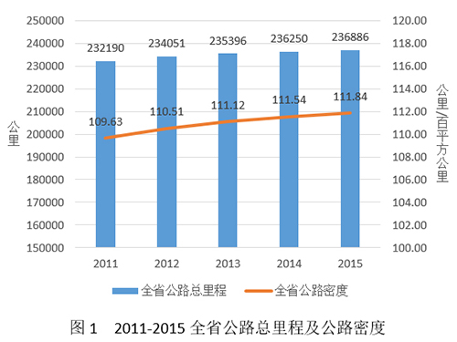 年末全省公路总里程236886公里,比上年末增加636公里。公路密度111.84公里/百平方公里,提高0.3公里/百平方公里。公路养护里程236600公里,占公路总里程99.9%。