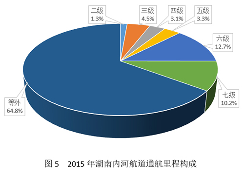 各等级内河航道通航里程分别为:二级航道161公里,三级航道539公里,四级航道375公里,五级航道395公里,六级航道1525公里,七级航道1221公里。等外航道7752公里。