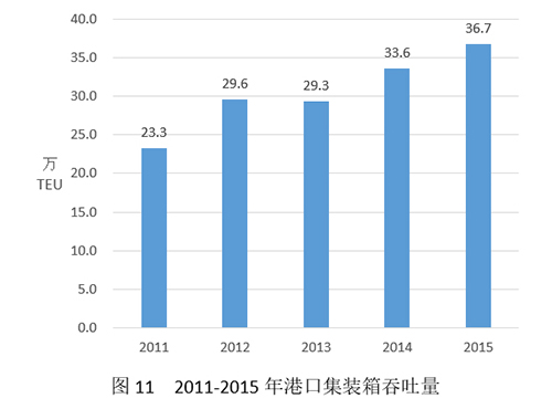 全年港口完成集装箱吞吐量36.7万TEU,比上年增长9.2%。