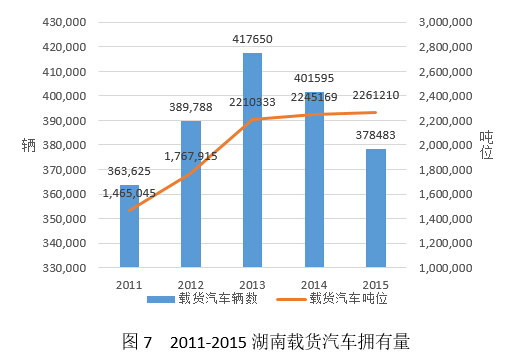 拥有载货汽车378483辆、2261210吨位,比上年末分别减少5.8%和增长0.7%。其中普通货车339818辆、1832124吨位,分别减少6.5%和1.3%;专用货车24763辆、429086吨位,分别增长3.9%和10.5%。