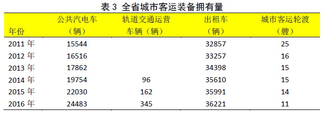 全省拥有公共汽电车运营线路1734条,比上年增加146条,运营线路总长度27030公里,增加2723公里。其中公交专用车道338公里,减少37公里;BRT线路长度55.4公里,减少126公里。轨道交通运营线路3条,增加2条,运营线路总长度68.8公里,增加42.2公里。城市客运轮渡运营航线6条,运营航线总长度4.4公里,减少1条、1.5公里。