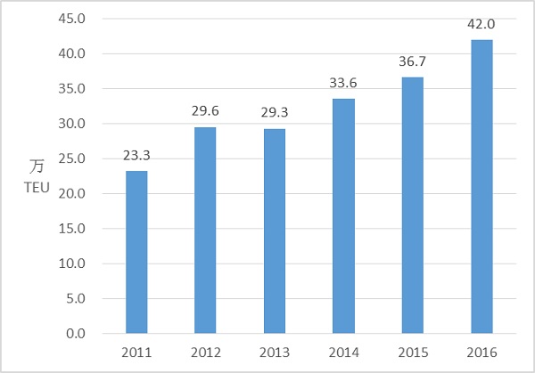 全省港口完成集装箱吞吐量42.0万TEU,比上年增长14.5%。