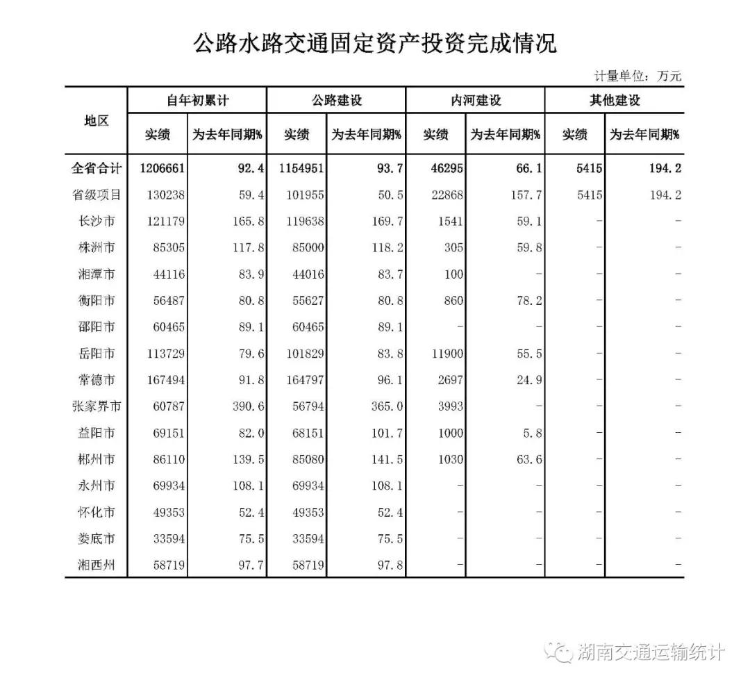 湖南省2018年3月公路水路交通固定资产投资完成情况