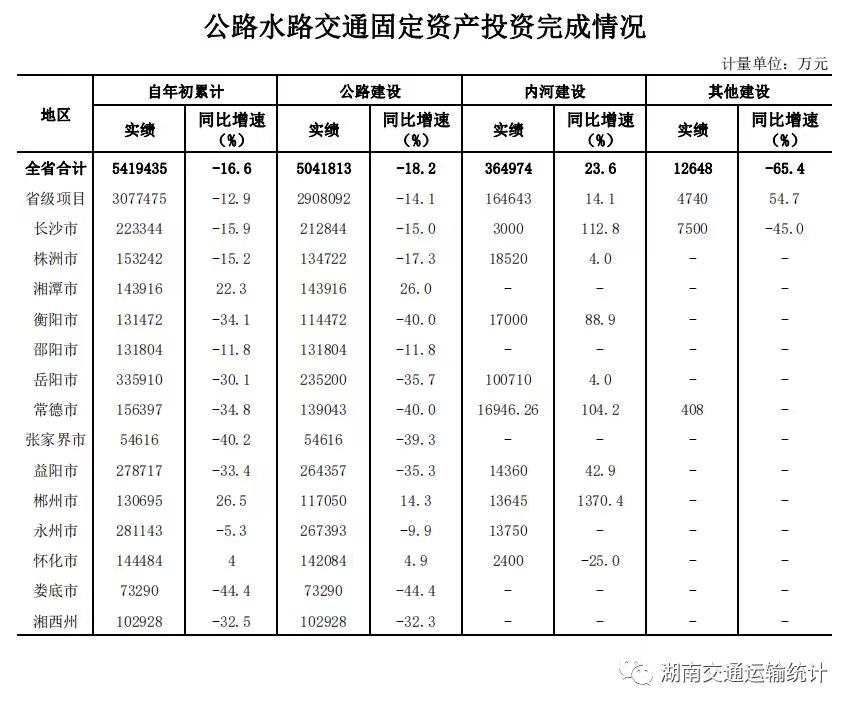 湖南省2023年7月公路水路交通固定资产投资完成情况
