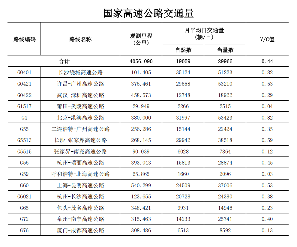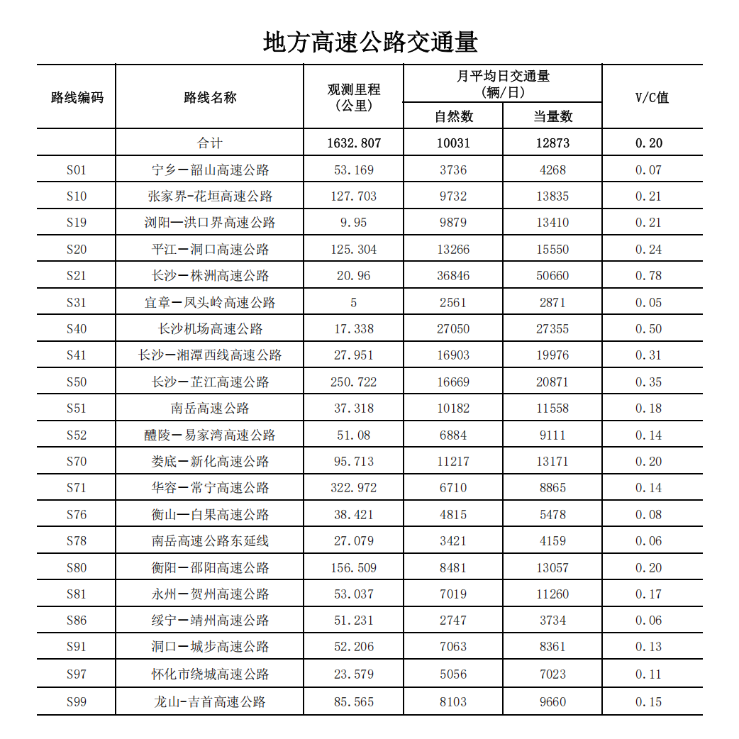 湖南省2025年8月高速公路交通量