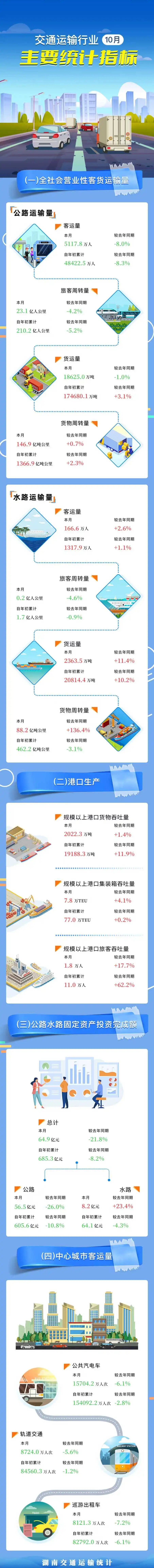 主要指标:湖南省2025年10月交通运输行业统计月报