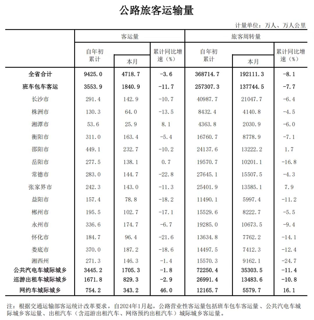 湖南省2026年2月公路旅客运输量