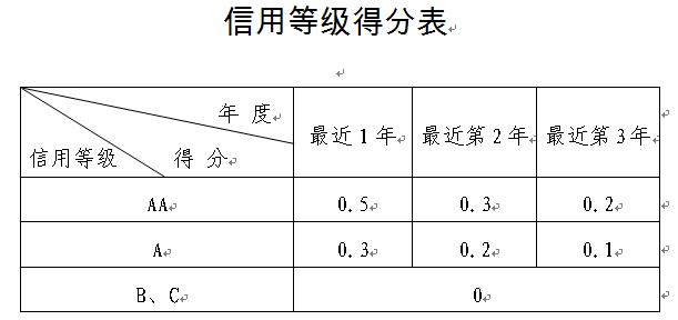 注:1.信用等级以湖南省交通运输厅每年发布的公路工程施工企业信用评价结果为准,信用评价得分为某一施工企业近3年信用等级得分之和。