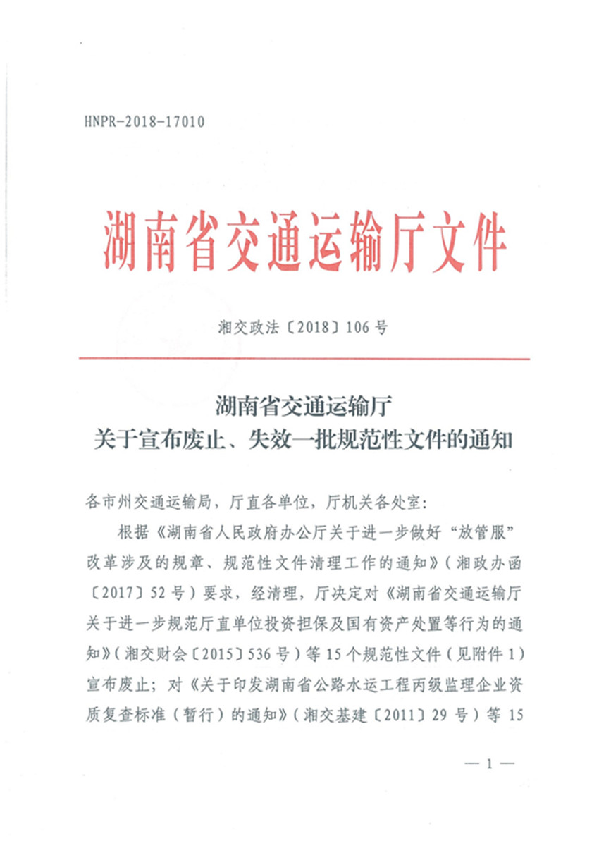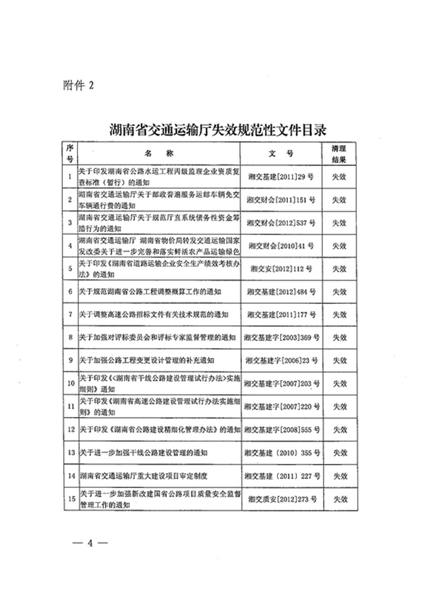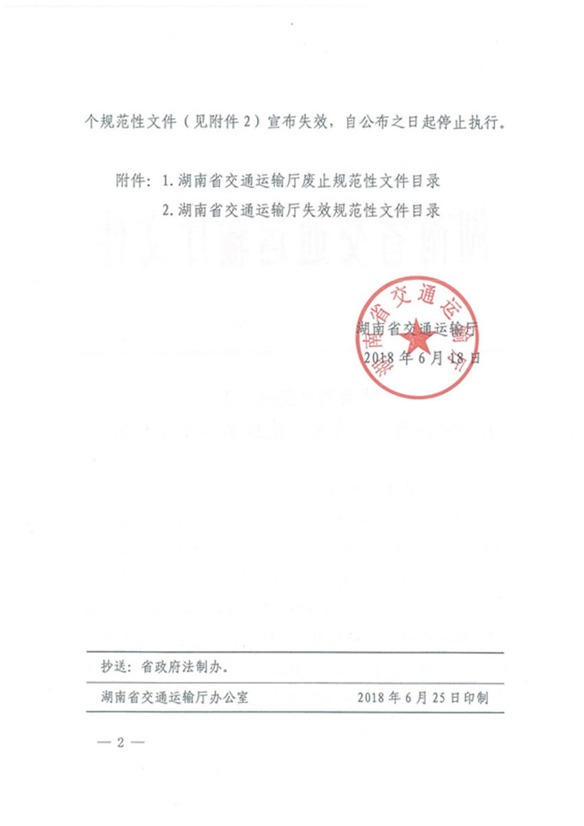 湖南省交通运输厅关于宣布废止、失效一批规范性文件的通知