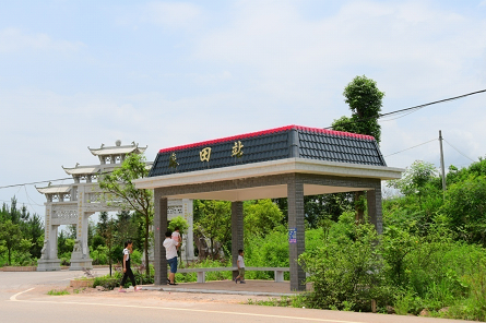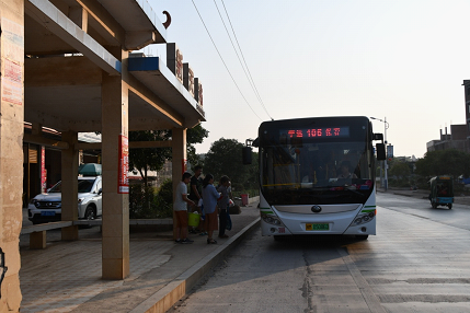 乘客在禾亭镇新天招呼站点搭乘城乡公交车