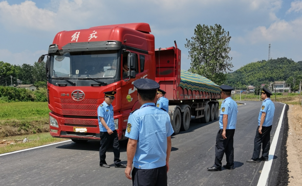 驻地执法中队对嫌疑车辆进行精准拦截。