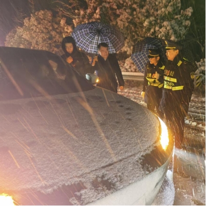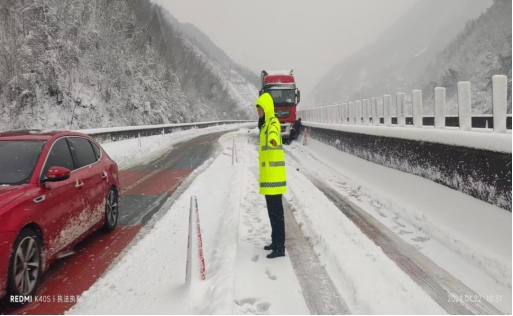 22日凌晨,湘西州花垣县交通运输综合行政执法大队主要领导带队在麻栗场路段对受冰雪严重影响通行道路进行现场管控,疏导车辆并劝阻车辆返回县城或就近停车住宿。