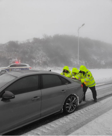 郴州市交通运输综合行政执法支队迎雪而上,全员上路,奋战一线。22日10点40许,在厦蓉高速K634路段,执法人员齐心协力帮助受困车辆脱困。