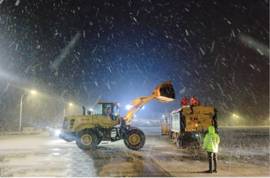 22日,衡阳市交通运输综合行政执法支队高速路政执法大队迅速出动,在管属高速公路上加强路段巡查,并联合高速路产经营部开展撒盐除雪作业,全力以赴做好除雪防滑保畅工作,保障公众出行安全。