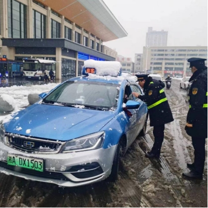 22日,湘潭市交通运输综合行政执法支队河东执法大队对板塘城铁站进行重点巡查,现场检查营运出租车车况,提醒广大出租车驾驶员雨雪冰冻天气行车规范运营。