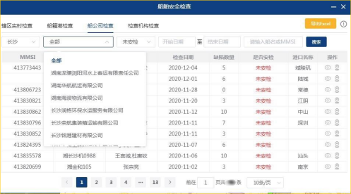 智慧检查预警系统具有统计分析实时船舶、船籍港、船舶船员相关证书、进出港报告等数据信息,判断船舶是否安检以及船检证书、船员适航证书等各项证书是否过期,掌握水运机构实施船舶安全检查、船舶现场监督情况的功能。此外,该系统可将统计出的检测数据表格化处理,检查异常的信息数据一目了然,可极大提高水运执法部门的针对性执法效率。