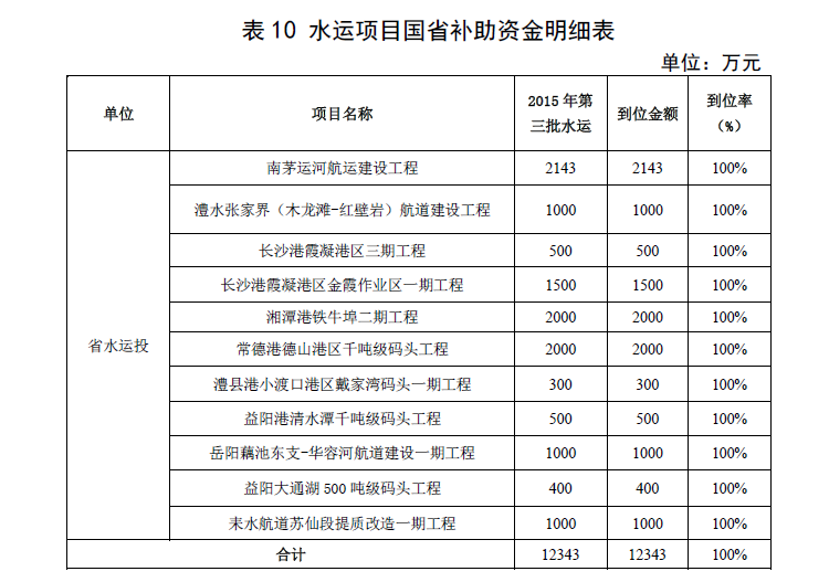 2016年省交通运输厅纳入现场评价水运专项资金12343万元。资金到位12343万元,到位率100%。具体情况如下(表10):