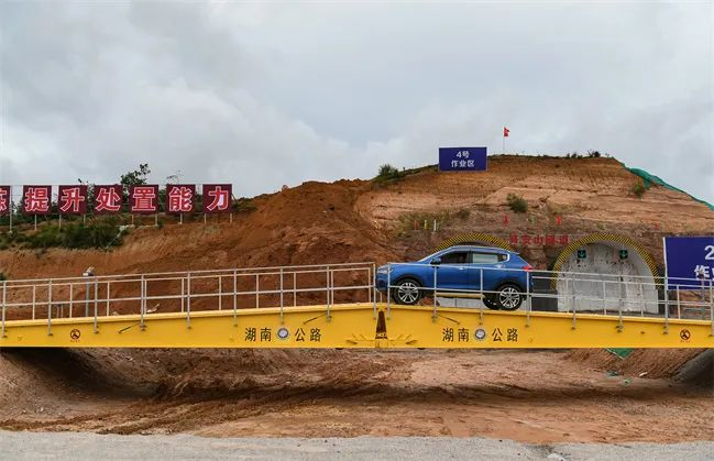 本次演练创新举措,以实战演练为主,辅以桌面推演等形式,针对我国南方地区严重影响公路网安全运行的痛点问题,设置75m应急模块化桥架设、26m应急快速桥、边坡塌方体清理、高速公路隧道口救援、高速公路隧道内事故处置、道路排涝、轻型自行门桥应急抢险等7个科目,完整呈现汛期公路突发事件应急处置全过程。演练采取现场观摩与视频观摩相结合的方式,通过国家区域性公路交通应急装备物资(湖南娄底)储备中心、省市县及公路企业应急抢险队伍、武警部队、地方医疗救援队深度参与,立足省内现有先进装备储备,比如26m应急快速桥、75m应急模块化桥、无人遥控挖掘机等先进的高科技应急抢险救援装备,呈现出一场科技赋能交通应急、高效联动配合的大型公路交通现代化应急抢险实战化场景。