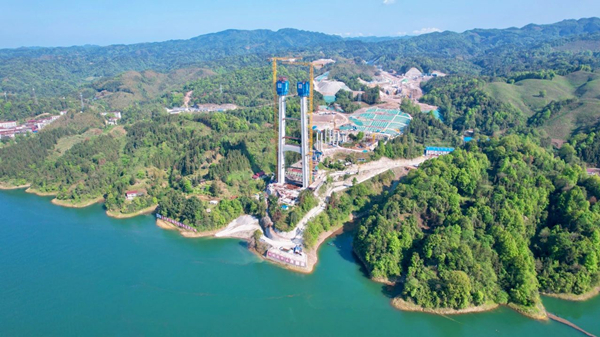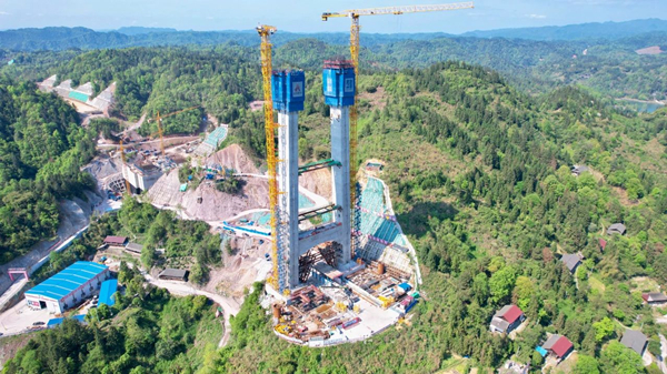 自2023年6月锚碇混凝土浇筑以来,已完成了锚块、散索鞍支墩基础以及部分散索鞍支墩的浇筑工作。截至目前,累计浇筑方量达12.8万立方米,占总设计方量95.5%。其中,单次浇筑的最大方量为1683立方米,最长浇筑时间30小时。