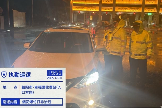 2025年12月31日晚,娄底市交通执法人员联合公安交管、高速交警在高速收费站开展“打非治违”百日联合执法行动。雨夜中,他们严格检查车辆,打击违法违规行为,用坚守为出行安全护航,成为跨年夜独特风景。