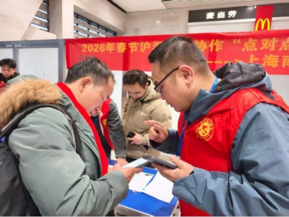此趟专列由沪湘两地人社部门共同发起,以“春暖返岗路沪湘一家亲”为主题,聚焦务工人员节后返岗出行难题,全力打造“出家门、上车门、进厂门”一站式闭环服务。车站专门设置专属服务台、绿色通道和候车区,实行全程免费、点对点护送,切实解决务工人员返岗不便等实际问题。