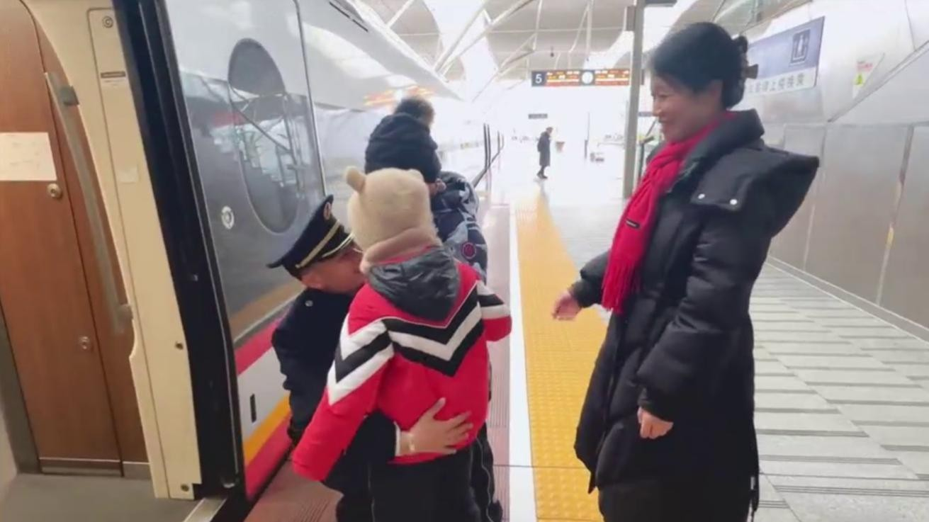唐成吉的妻子覃凌之是一名医护人员,刚在医院值完班。得知丈夫今年又要在列车上度过除夕,她特意买上丈夫值乘的 G506 次列车车票,带着两个儿子,拎着装满爱心饭菜的保温饭盒,来到站台为爱人送上惊喜。保温饭盒里,是唐成吉最爱吃的珍珠肉丸、香煎鲈鱼和冬笋炒腊肉,每一道都是家的味道。列车比预定时间提前三分钟抵达长沙南站,看到妻儿挥手向自己打招呼,唐成吉又惊又喜,快步上前紧紧抱住两个儿子,脸上满是幸福的笑容。短暂相聚只有 8 分钟,列车即将继续北上。唐成吉叮嘱妻子:“晚上见,回来估计要 12 点以后了。”简单告别后,他立刻转身回到工作岗位,继续守护旅客出行。一边是万家团圆的春运归途,一边是夫妻各自坚守的责任。铁路人守护千万旅客平安返乡,家人用理解与陪伴温暖坚守。这 8 分钟的团圆,是春运里动人的风景,也让这个除夕更有温度。(来源:中国交通广播)