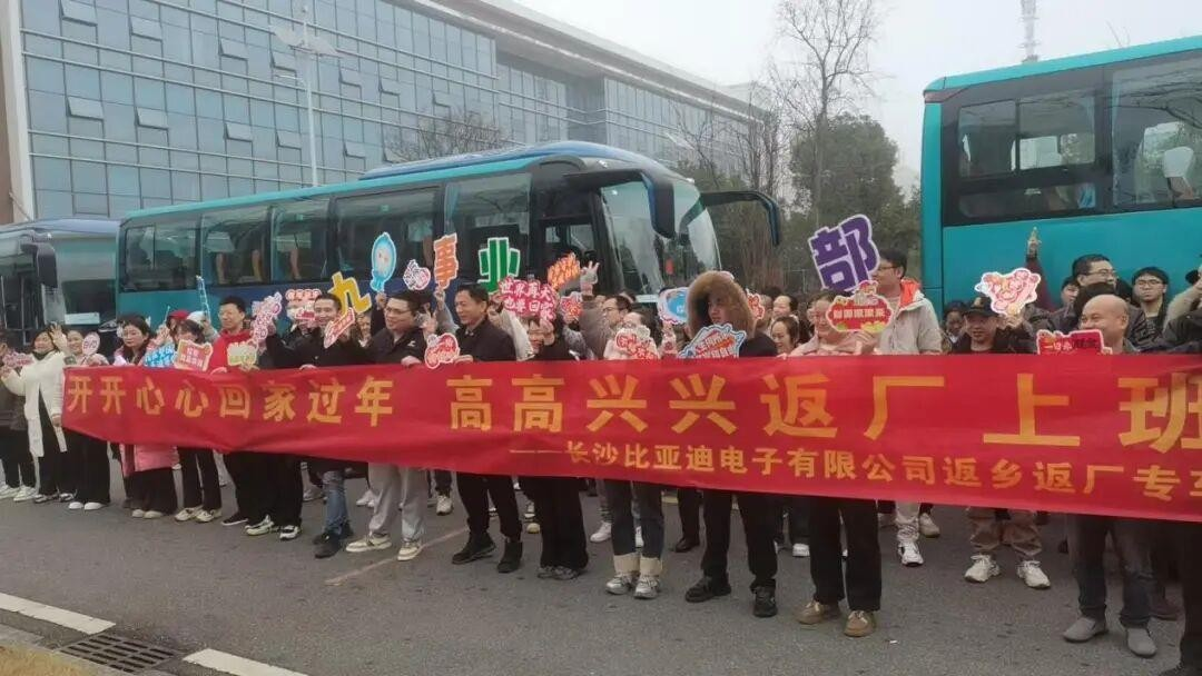为了让城市建设者们平安、便捷返乡团圆,长沙道路运输推出“点对点”定制运输服务,将温暖从“厂门”延续到“家门”。2 月 13 日,由长沙盛达公司与新干线公司联合执运的宁波至长沙返湘专线正式发车,3 台干净整洁的大巴车搭乘 138名湘籍务工人员踏上温暖回湘路。2 月 14 日和 15 日,在长沙望城比亚迪公司提前安排的 20 台返乡大巴,护送 630 名务工人员向着团圆的方向前行。
