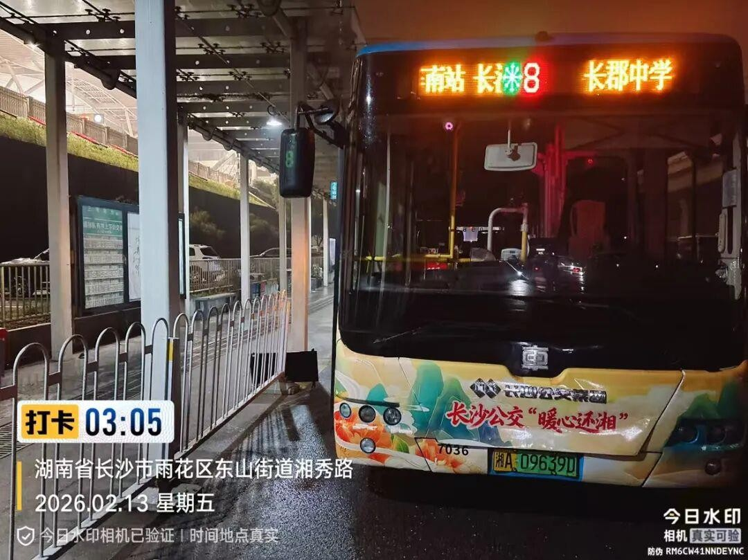 春运期间,夜间高铁密集到发,长沙公交充分发挥“兜底”作用,在长沙火车南站储备了 12 台凌晨 0 点至 5 点的夜间备班接驳车辆。2 月 14 日凌晨,当最后一班高铁的旅客陆续出站,3台提前安排的应急公交随即启用,将深夜到站的旅客安全送达城市各处,确保不让一名旅客滞留。在服务市民出游方面,公交同样精准发力2 月 14 日,长沙生态动物园专线启用 3 台车辆,发送 24 趟次,保障市民游园出行需求。针对可能出现的瞬时大客流,橘子洲景区全天备班接驳车辆,并在周边安排充足公共交通运力。据统计,2 月 14 日全市公交行业,共计完成 9649趟次公交运营,用高效运转守护市民出行。