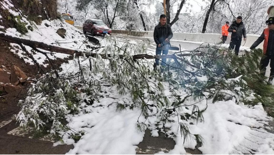 公路养护职工锯断积雪积压下的残枝