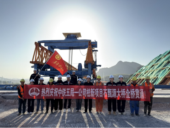 11月25日,随着最后一片预制T梁精准落位,中铁五局承建的桂新高速石甄源大桥实现全桥贯通。这座全长918米的控制性工程合龙,标志着桂新高速2标段全线贯通,为明年按期通车奠定坚实基础。