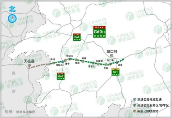 按照规划,项目全线设高沙(枢纽)、花园、瓦屋塘、麻塘、高椅、堡子、会同北(枢纽)、青朗8处互通式立交,以及洞口南、会同北2处服务区和绥宁北1处停车区。同步建设麻塘、青朗2条互通连接线,桥梁92座、隧道13座,桥隧比近50%。其中,路线起点至青朗互通设计时速120公里,青朗互通至终点段设计时速100公里。