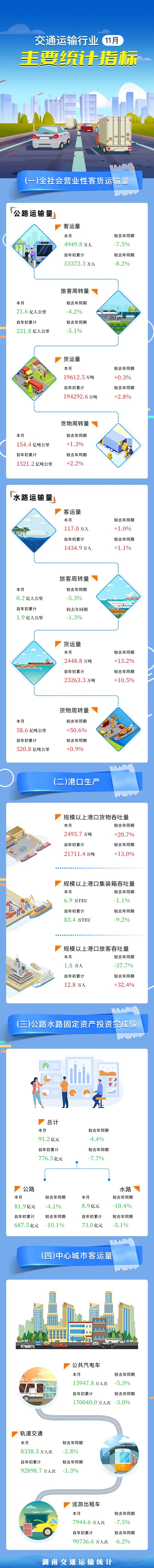 主要指标:湖南省2025年11月交通运输行业统计月报