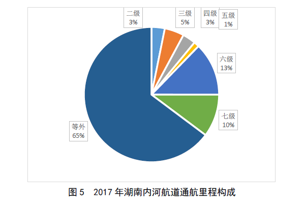 各等级内河航道通航里程分别为:二级航道381公里,三级航道559公里,四级航道375公里,五级航道155公里,六级航道1525公里,七级航道1221公里。等外航道7752公里。