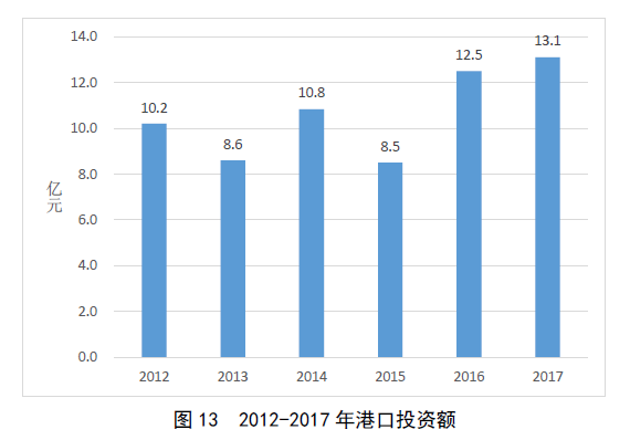 全年完成投资13.1亿元,比上年增长4.9%。内河港口新建码头泊位6个,新增通过能力256万吨/年。