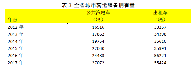年末全省拥有公共汽电车27072辆,比上年增长10.6%,其中BRT车辆172辆,与上年持平。按车辆燃料类型分,柴油车占23.7%,天然汽车占11.8%,汽油车占0.3%,混合动力车占31.0%,纯电动车占33.3%。出租汽车运营车辆35424辆,减少2.2%。